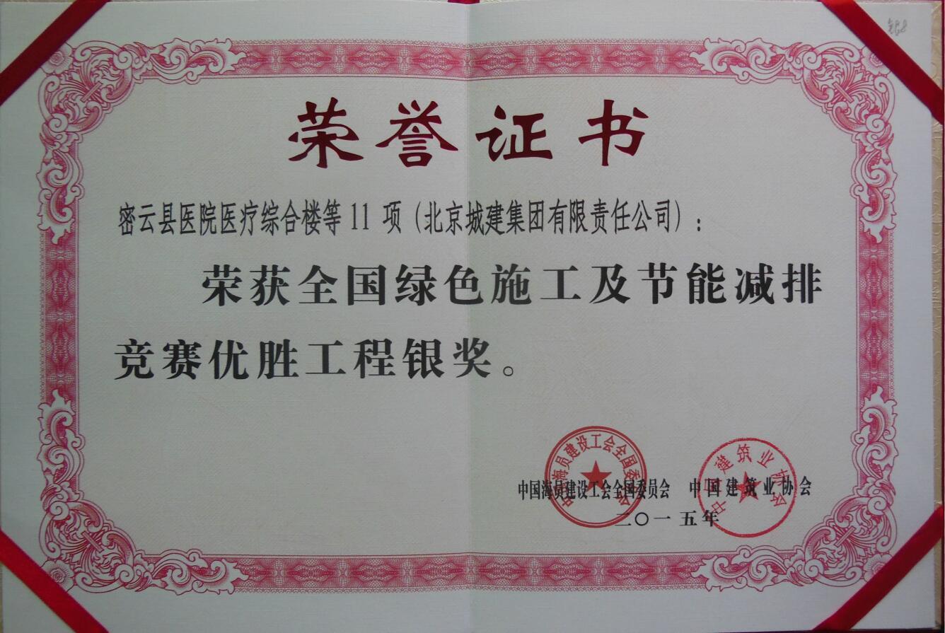 近日,由中国建筑业协会主办的“全国建筑业绿色施工总结表彰会”在北京举行,我集团公司承建的密云县医院医疗综合楼等11项工程荣获2015年度“全国绿色施工及节能减排竞赛优胜工程银奖”,公司副总裁、总工程师韩建成、公司副总裁、一分公司总经理王俊杰,公司质量总监张兰芳荣获“2015年度全国绿色施工及节能减排竞赛银奖先进个人”称号。
