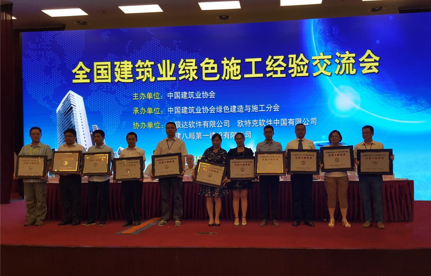 本次全国共有11个工程获得“全国绿色施工及节能减排竞赛优胜工程金奖”,13个工程获得“全国绿色施工及节能减排竞赛优胜工程银奖”,我集团公司荣幸成为获奖单位之一,会上有关单位分享了绿色施工及节能减排的优秀施工经验,中国建筑业协会对获奖单位及先进个人进行了表彰。